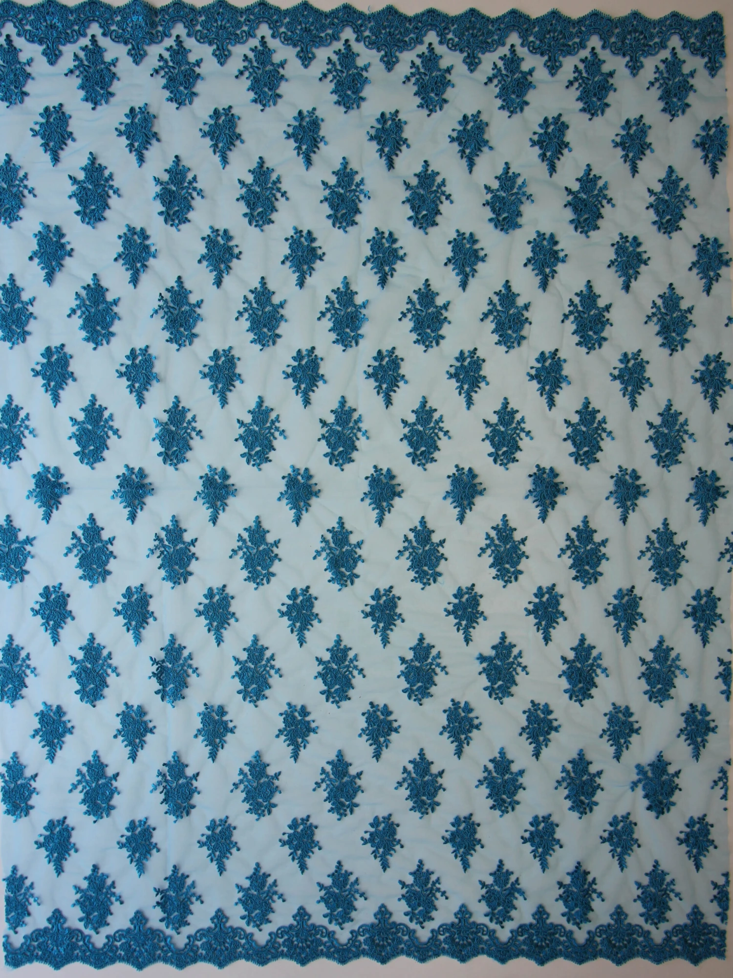 Janis is a delightful blue floral themed corded lace that we also stock in a range of colours.Â
