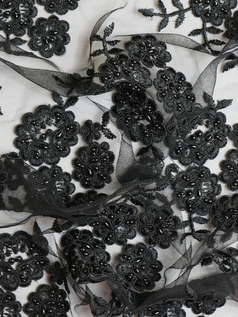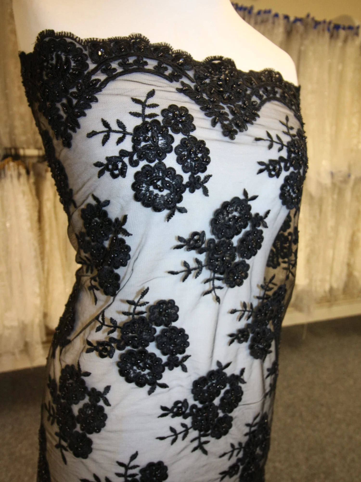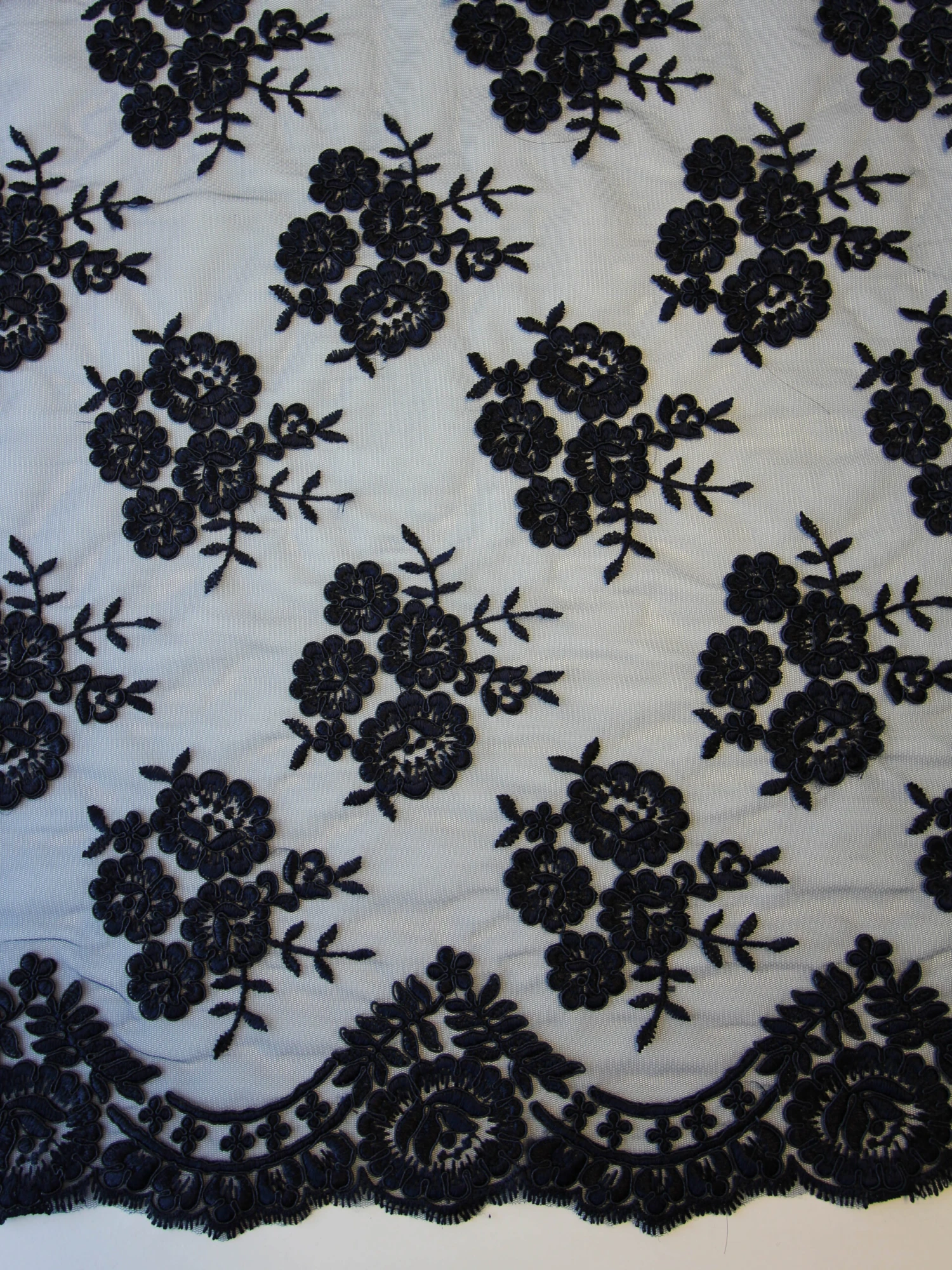 Riaz is a richly embroidered lace featuring floral motifs and matching scalloped edges. This lace measure 128 cm (50″) and features lovely corded detail and is also available in other colours.