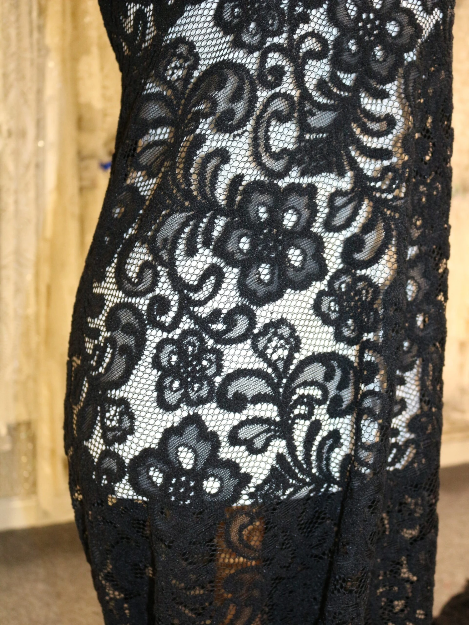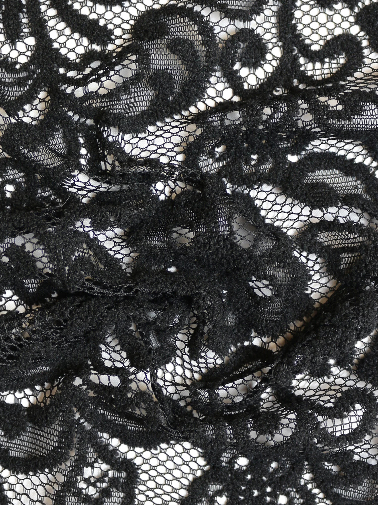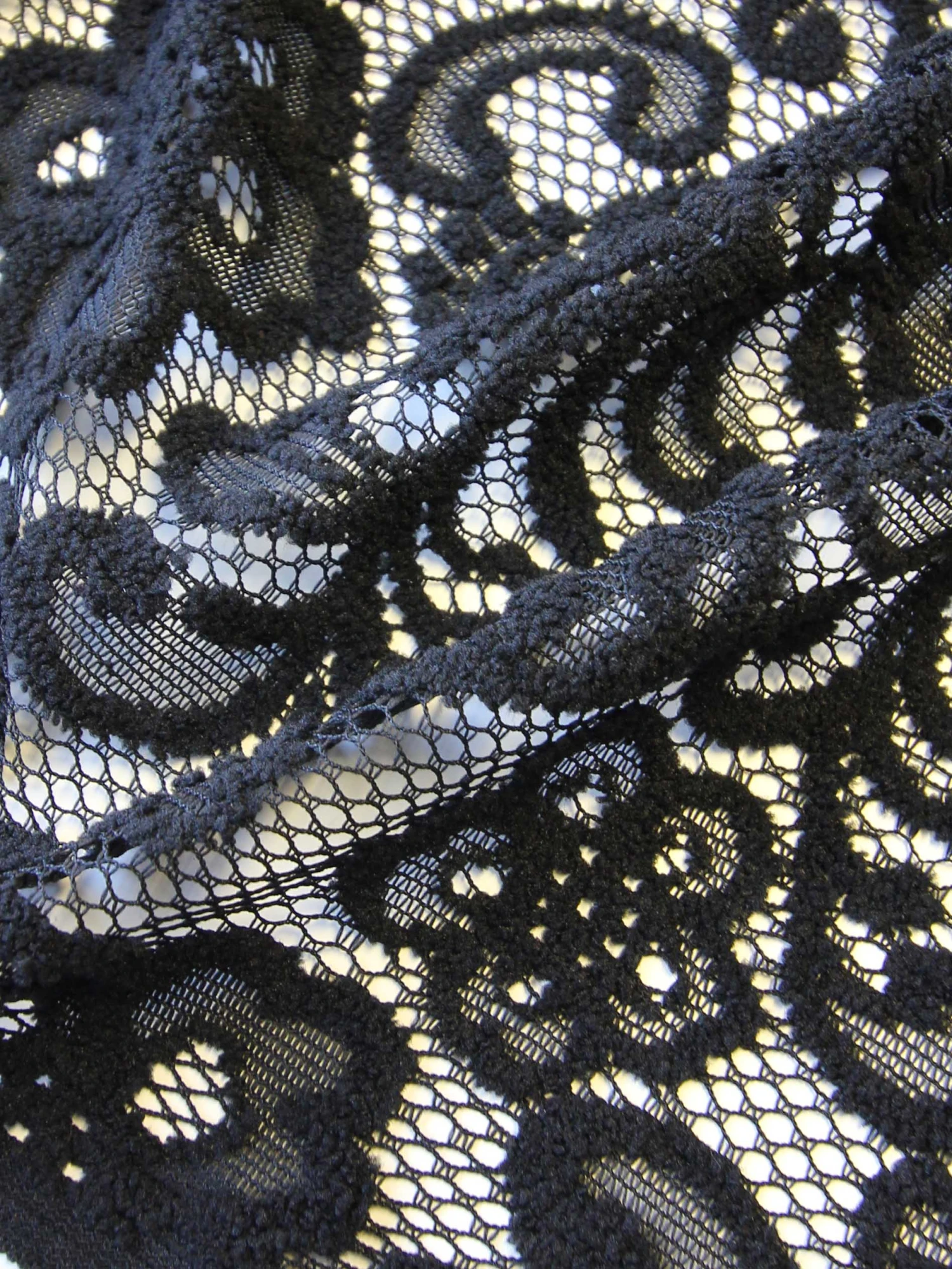 Edwina has is a woven black lace with plain edges and is a heavy quality and is perfect for winter dresses. Measuring 144 cm (56″) wide, this is one of our more eye-catching and dramatic laces.