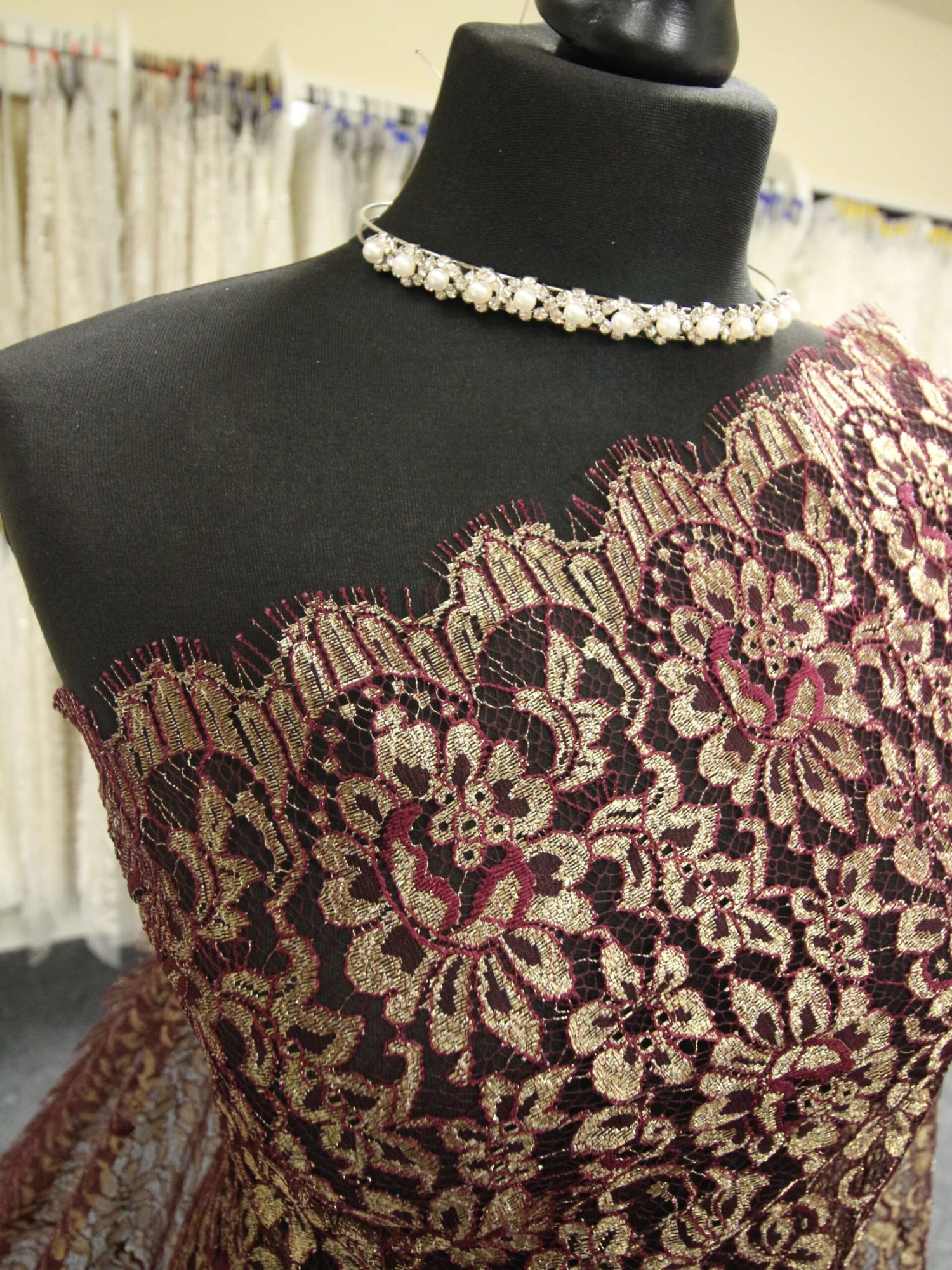 We offer this lace in a choice of colourways – Gold on Gold and Gold on Magenta