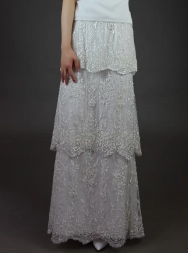 This ivory bridal lace measures 132 cm (52″) wide. Our designer has used a soft tulle for the ground and then embroidered it with a rich ivory thread to form a floral themed wedding lace that is stunning and has a vintage appeal.