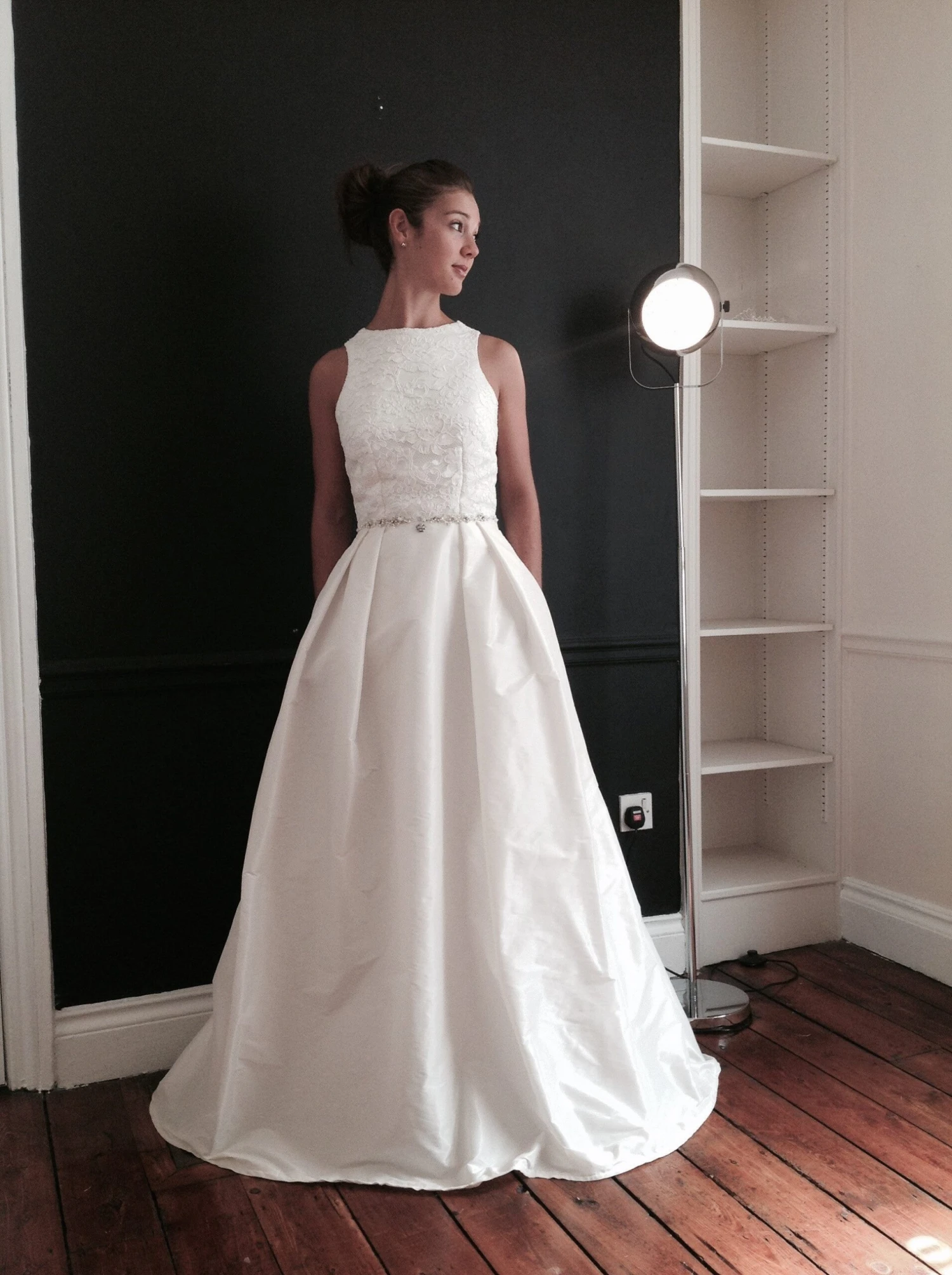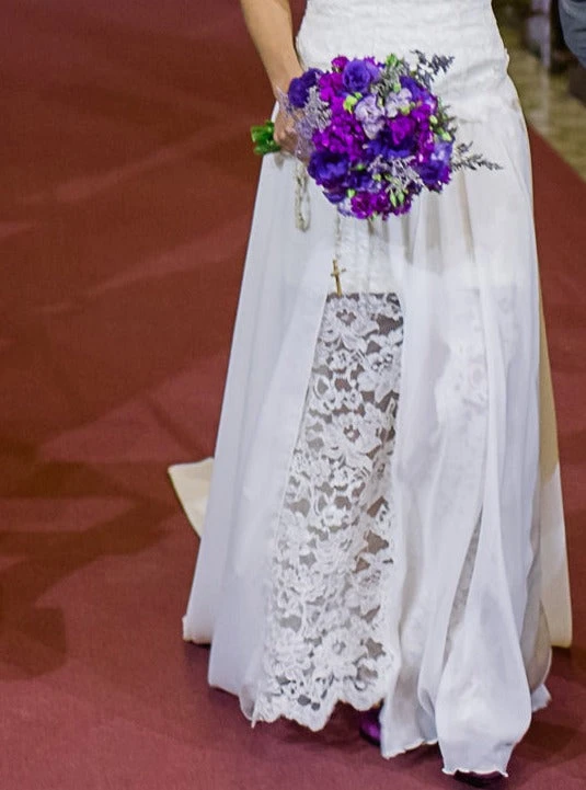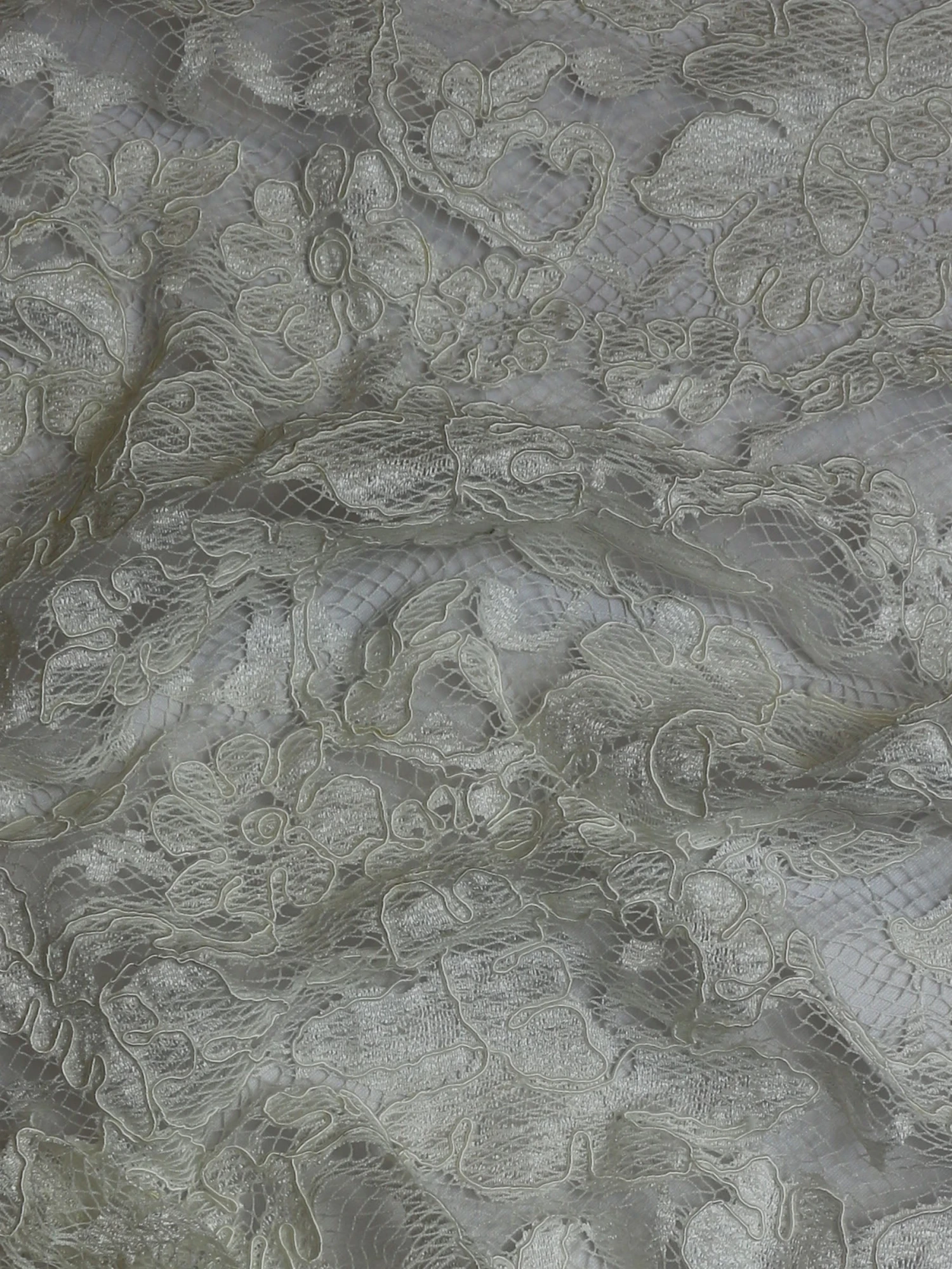 An elegant floral themed bridal lace in ivory with large embroidered flowers and foliage, which are subsequently corded.