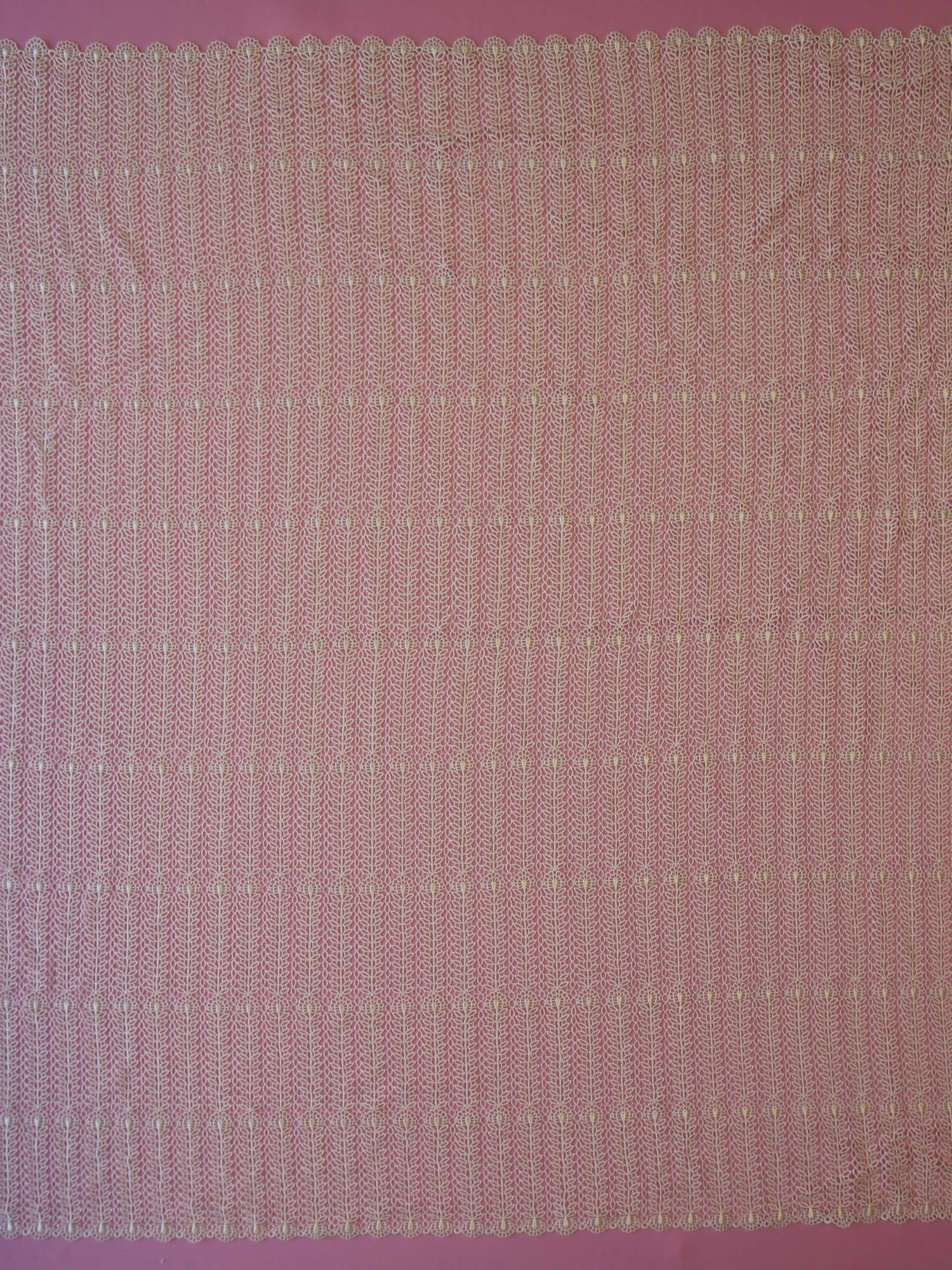 A retro design of vertical petals broken by a fan of teardrops, this Guipure lace has identical edges, which are both scalloped with a fan of teardrops. Grace measures 97 cm (38.1″) wide and is ivory in colour.