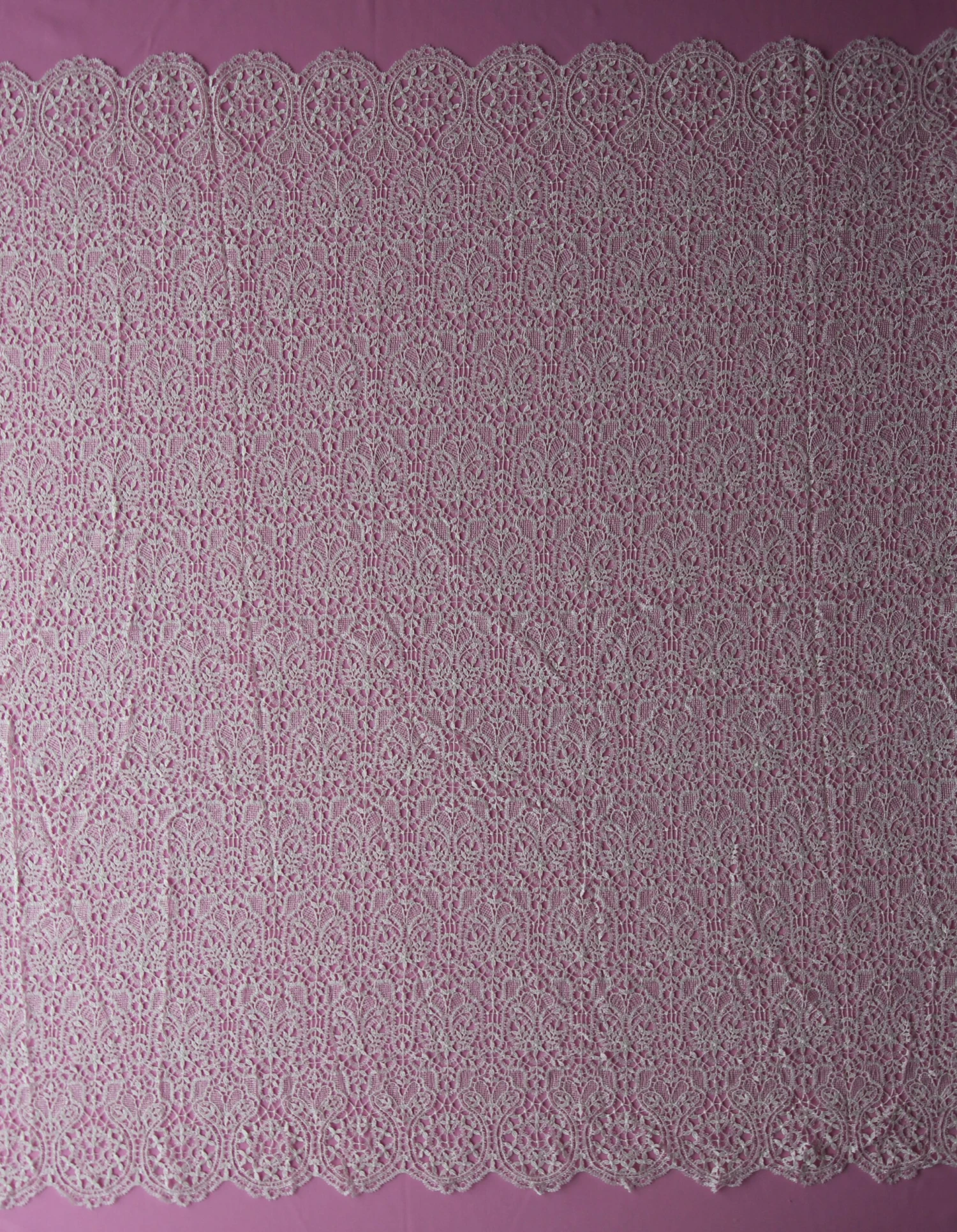 This lace measures 107 cm (42″) in width. We now offer this lace in white also.