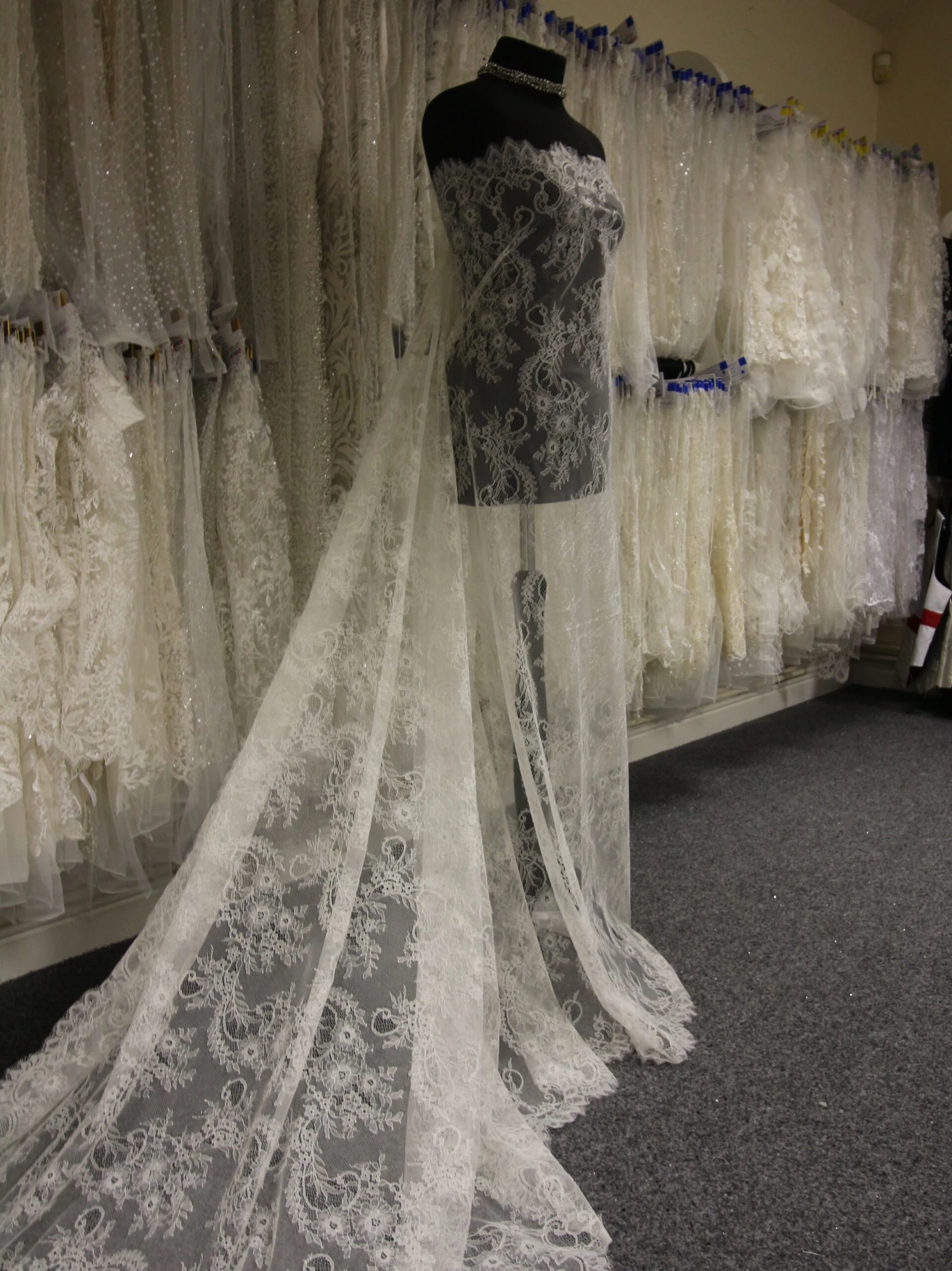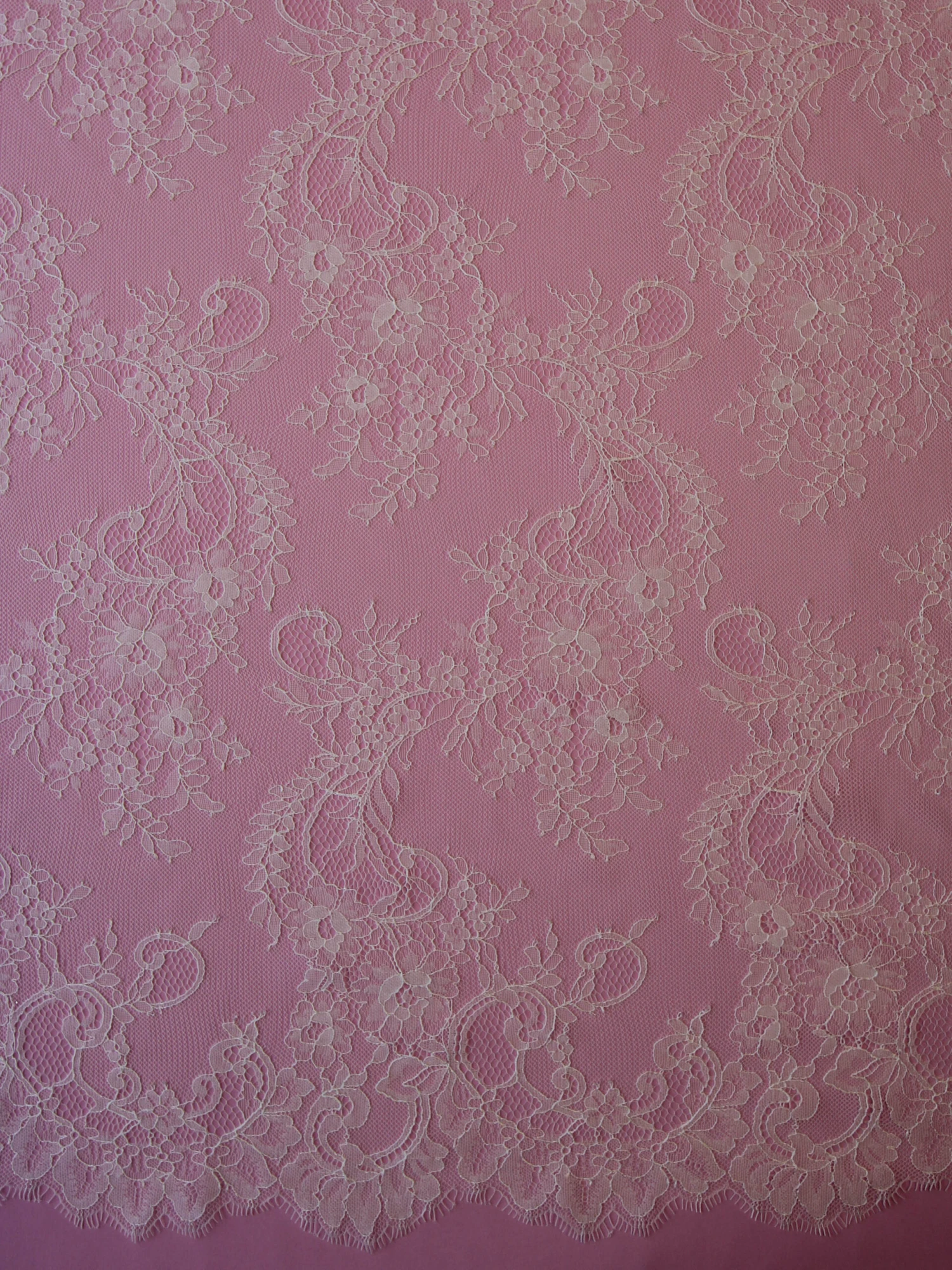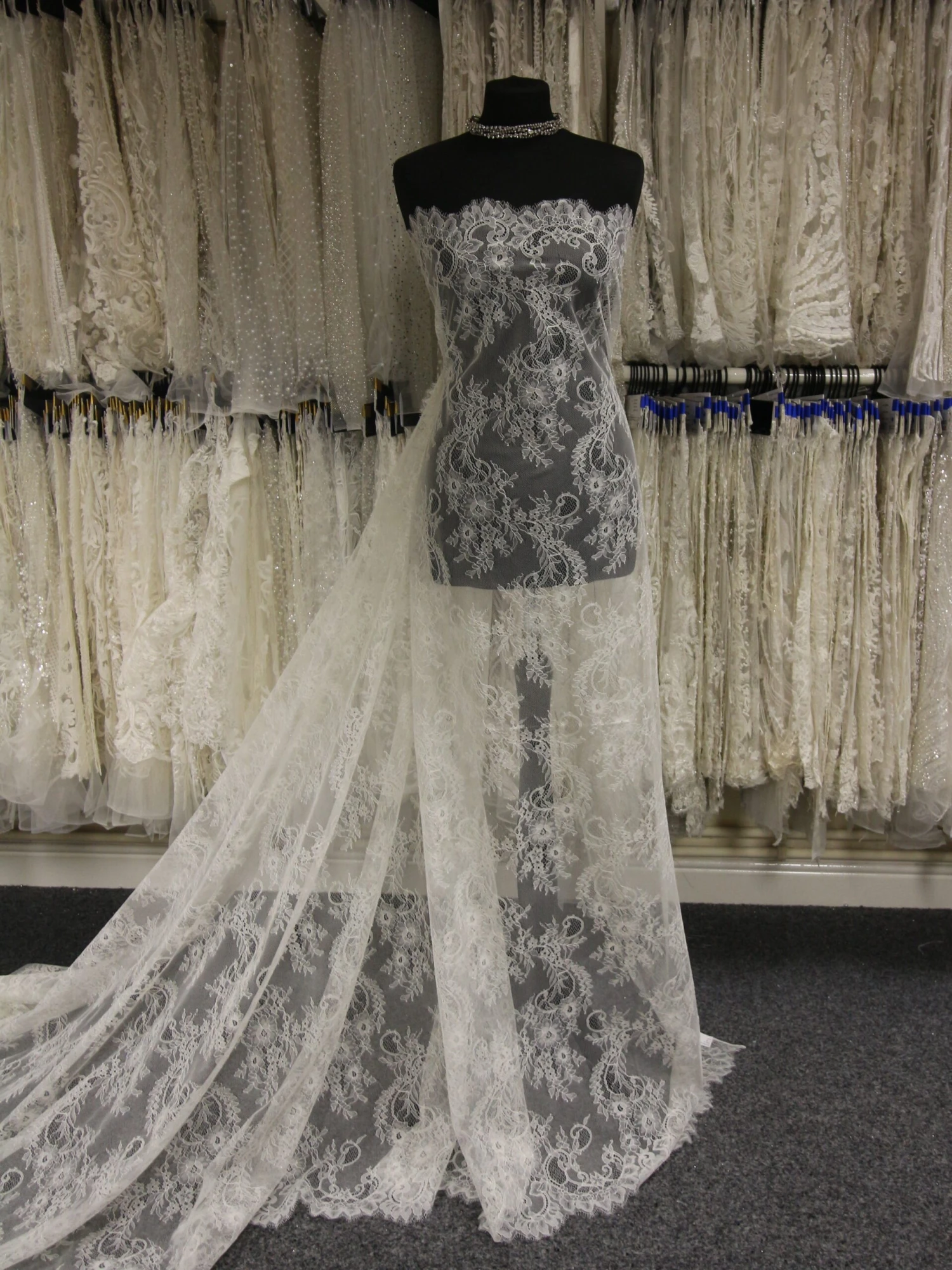 An elegant, ivory Wedding Lace, which is very lightweight and has floral motifs throughout.