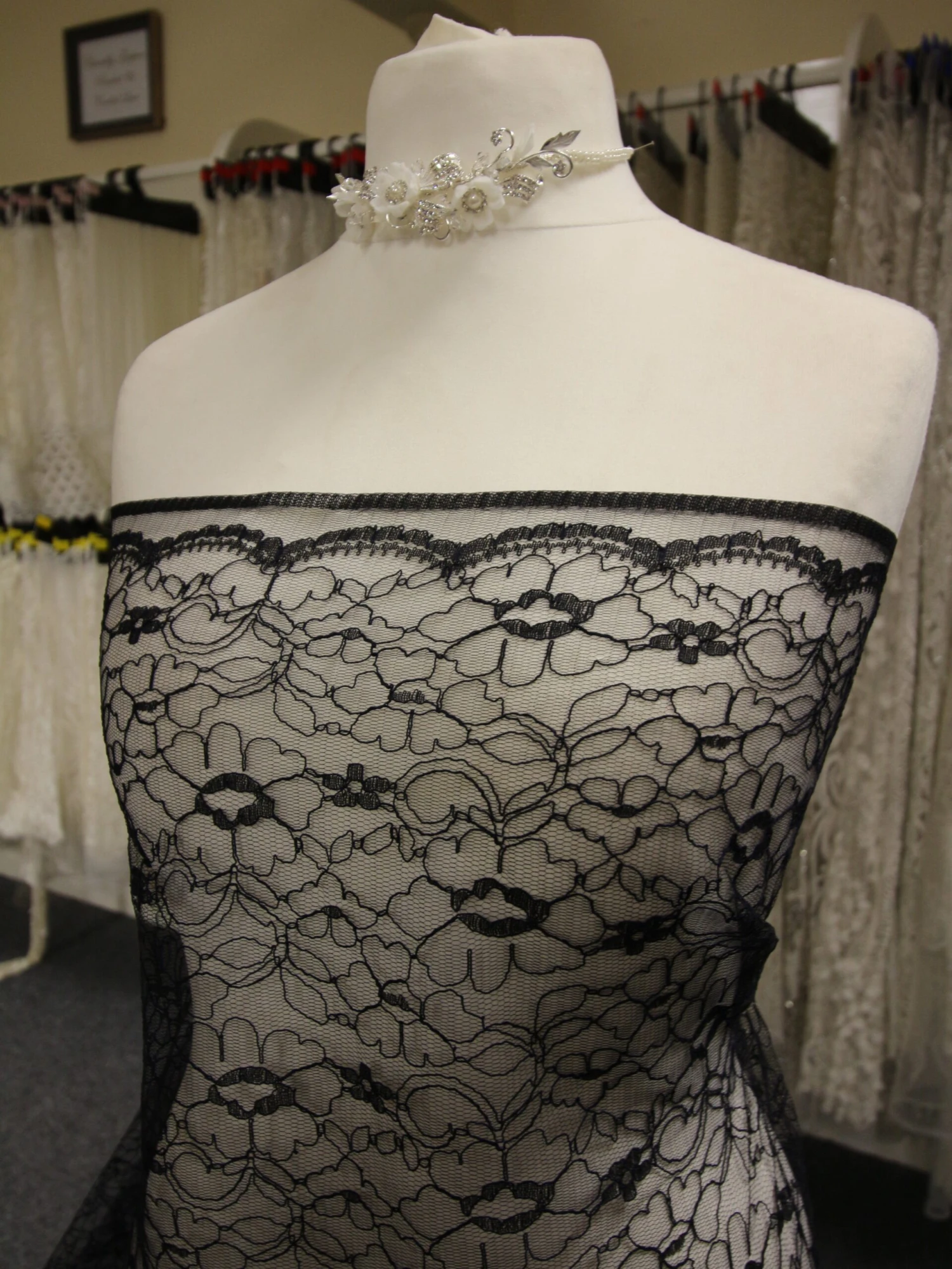 A very simple, yet elegant navy blue lace measuring 120 cm (47″) wide that we also offer in a range of other colors.
