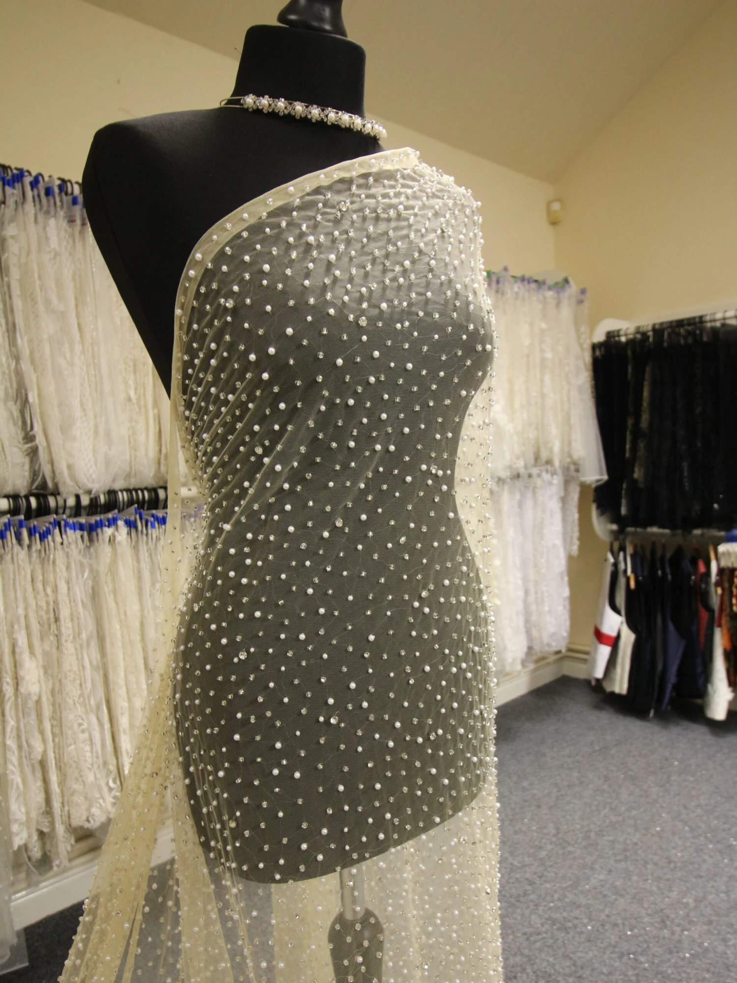 Measuring 130 cm (52″) wide, this offers a variety of different uses in bridal wear.Â