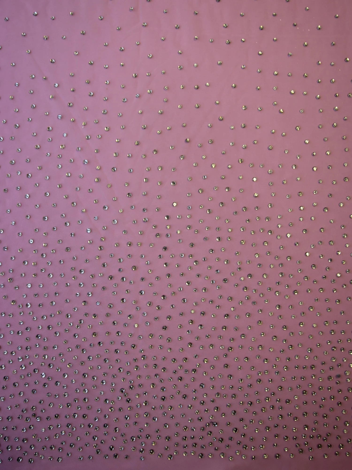 An elegant and sophisticated nude tulle base that has been embellished beautifully with sparkling diamantes in 2 different sizes. The density of the diamantes reduces moving across the width.Â