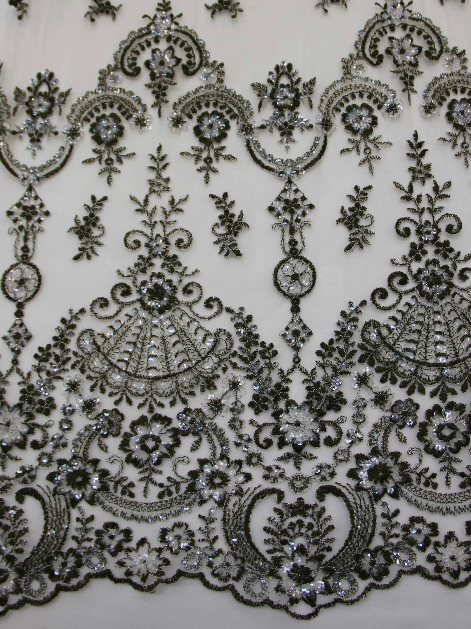 An olive green design with a lovely lace a vintage feeling. This lace measures 132 cm (52″) wide .