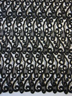 A dramatically embroidered pink lace on a tulle base that measures 116 cm (46″) wide. There is some delightful lattice work surrounded in a leafy pattern. We also offer this design in a tasteful beige/Frappé colourway.