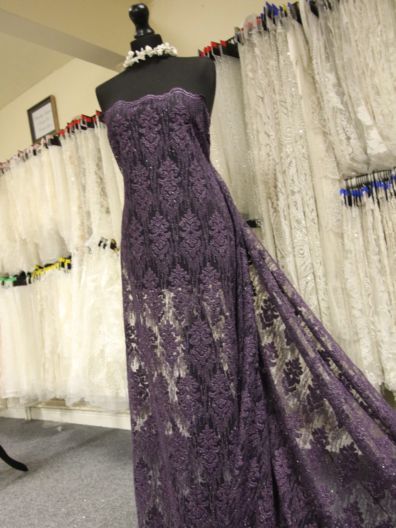 A lace that measures 135 cm (53″) from edge to edge, this has a colour co-ordinated tulle base.
