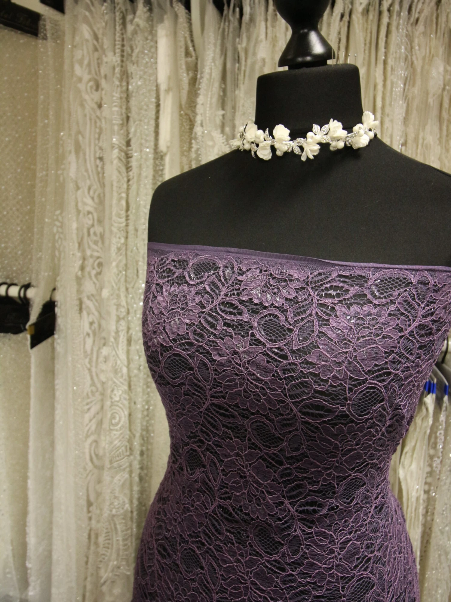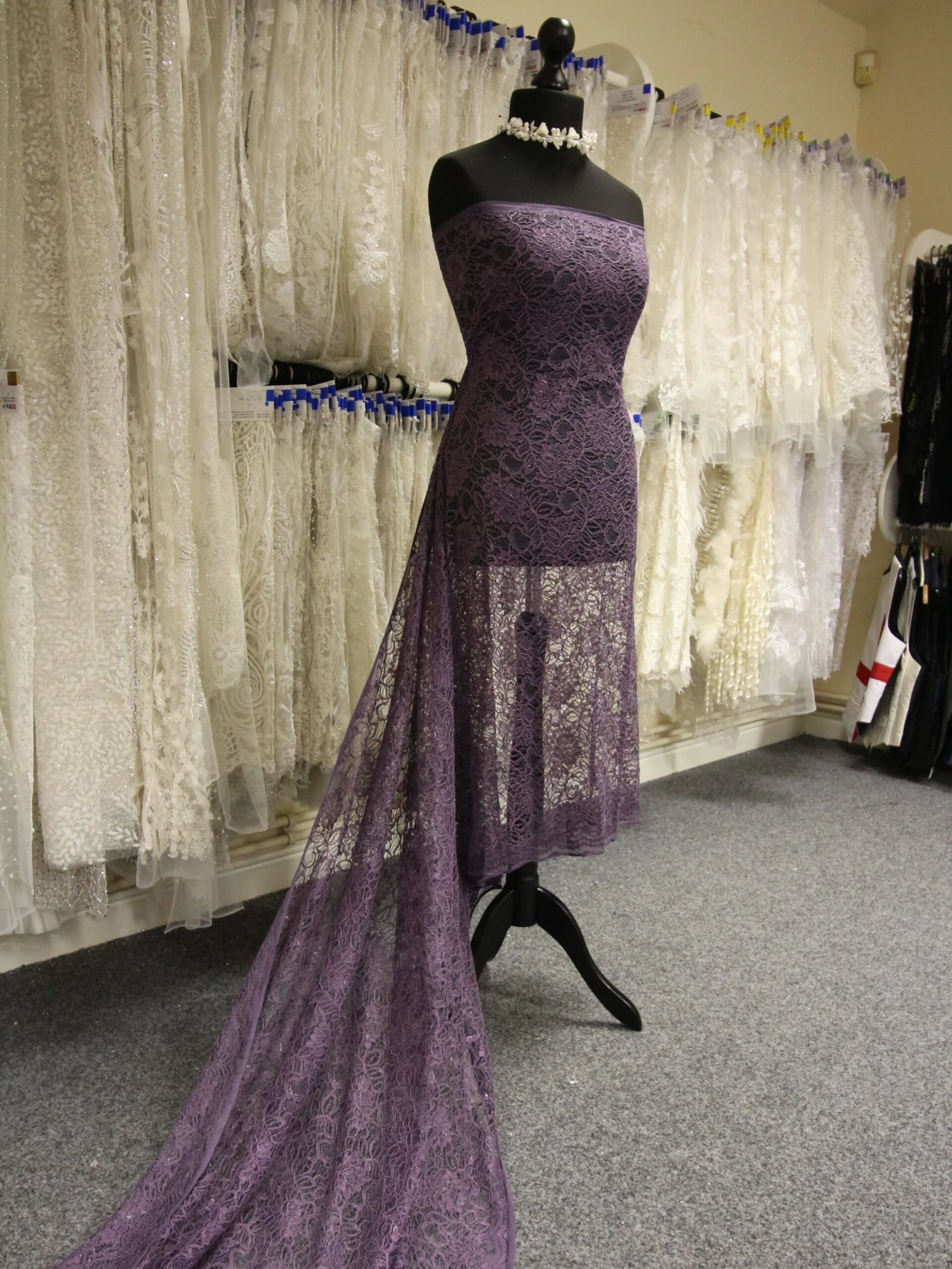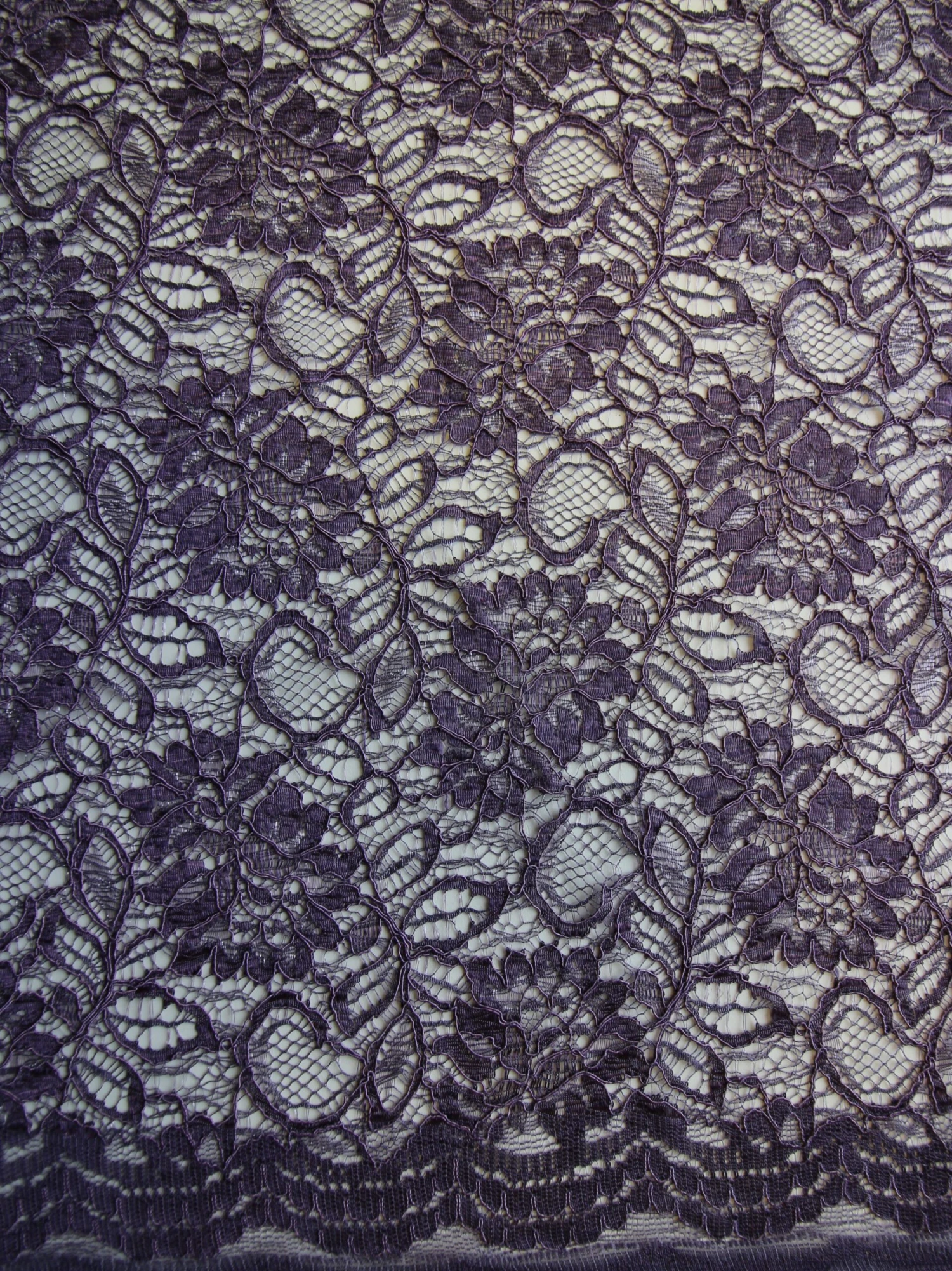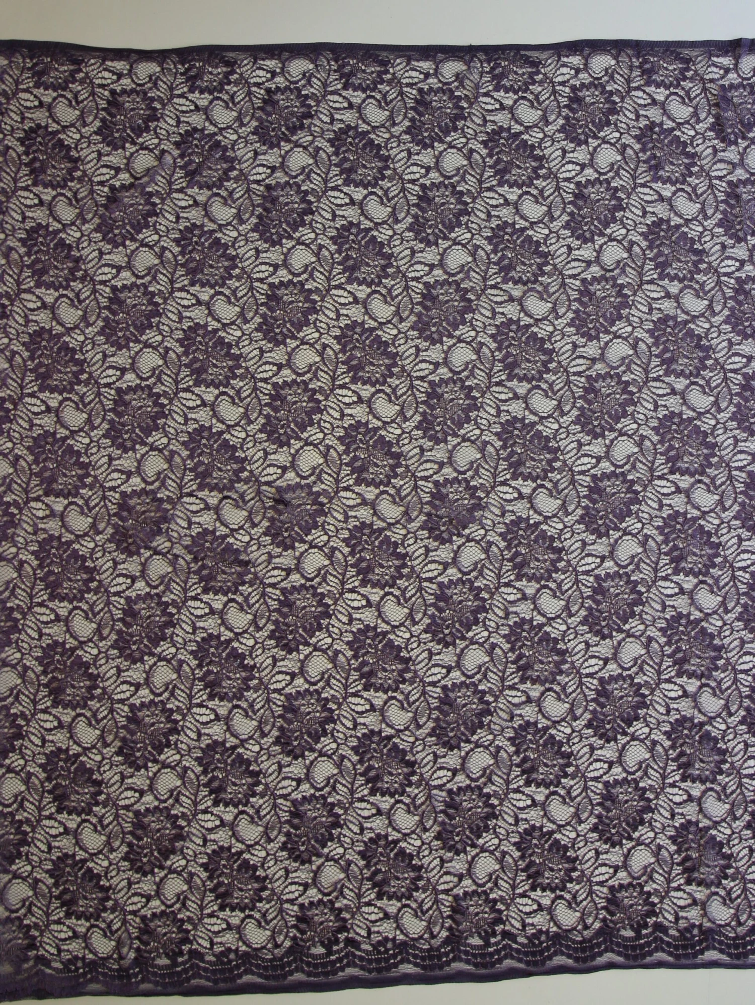 Offered in a great range of colors, Ezra is a superb deep purple lace for mother of the bride, occasion wear and evening wear. The base Raschel weave is diverse with closely woven and open woven sections creating the wonderful floral design that is the base of this lace. The flowers and swirls are further highlighted by delicate cording.