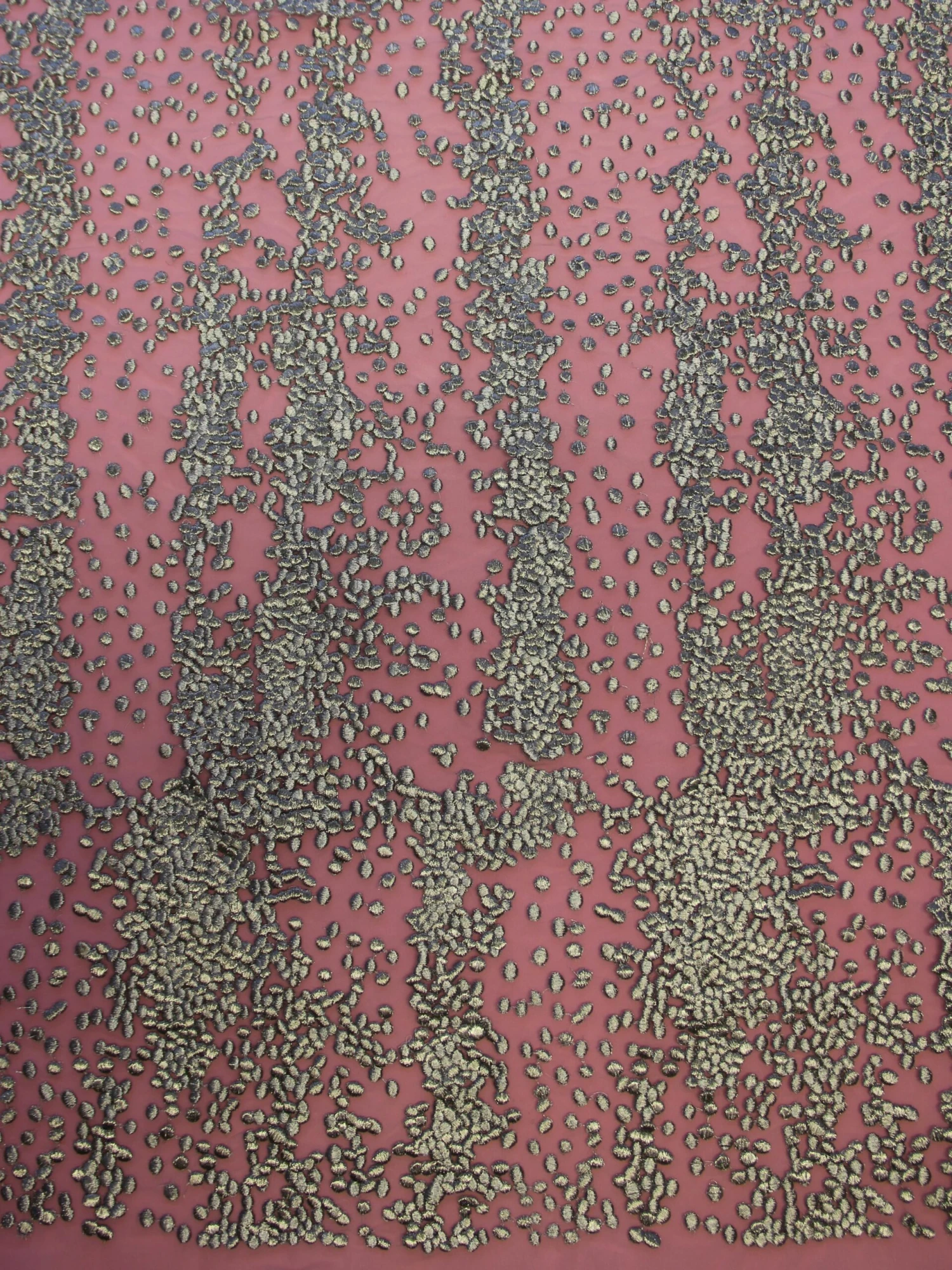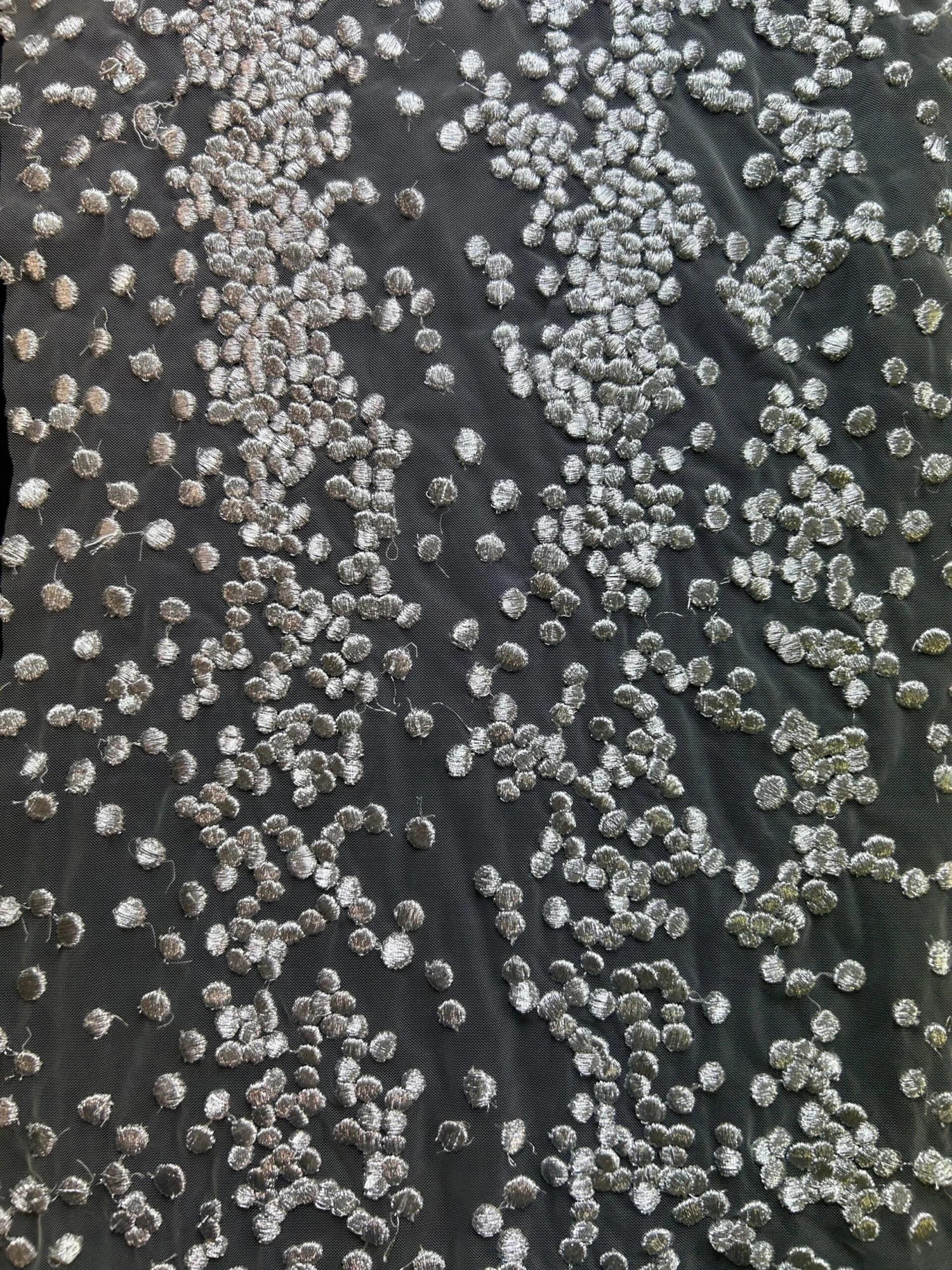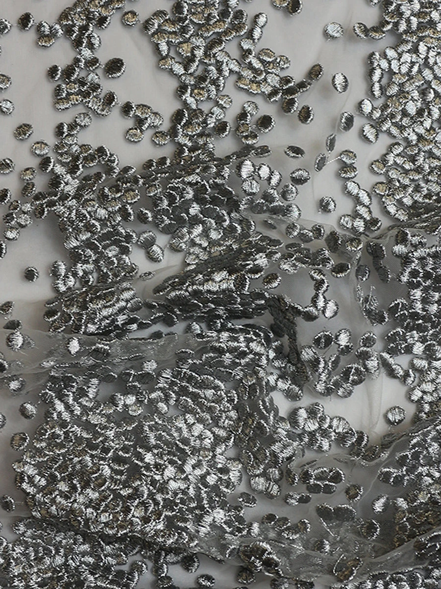 A very striking Silver embroidered lace fabric for the most daring bride or someone looking for an eye catching eveningwear fabric.