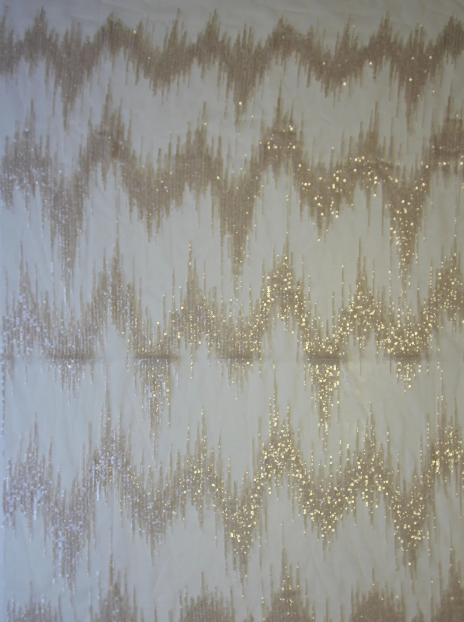 With visions of a sweeping ice queen cape, this arresting silver design of zig zags in sequins is dazzling. For evening wear, bridal, theatre costumes or dance wear this is a conspicuous choice. A striking design that repeats approximately every 30 cm (12″). Â