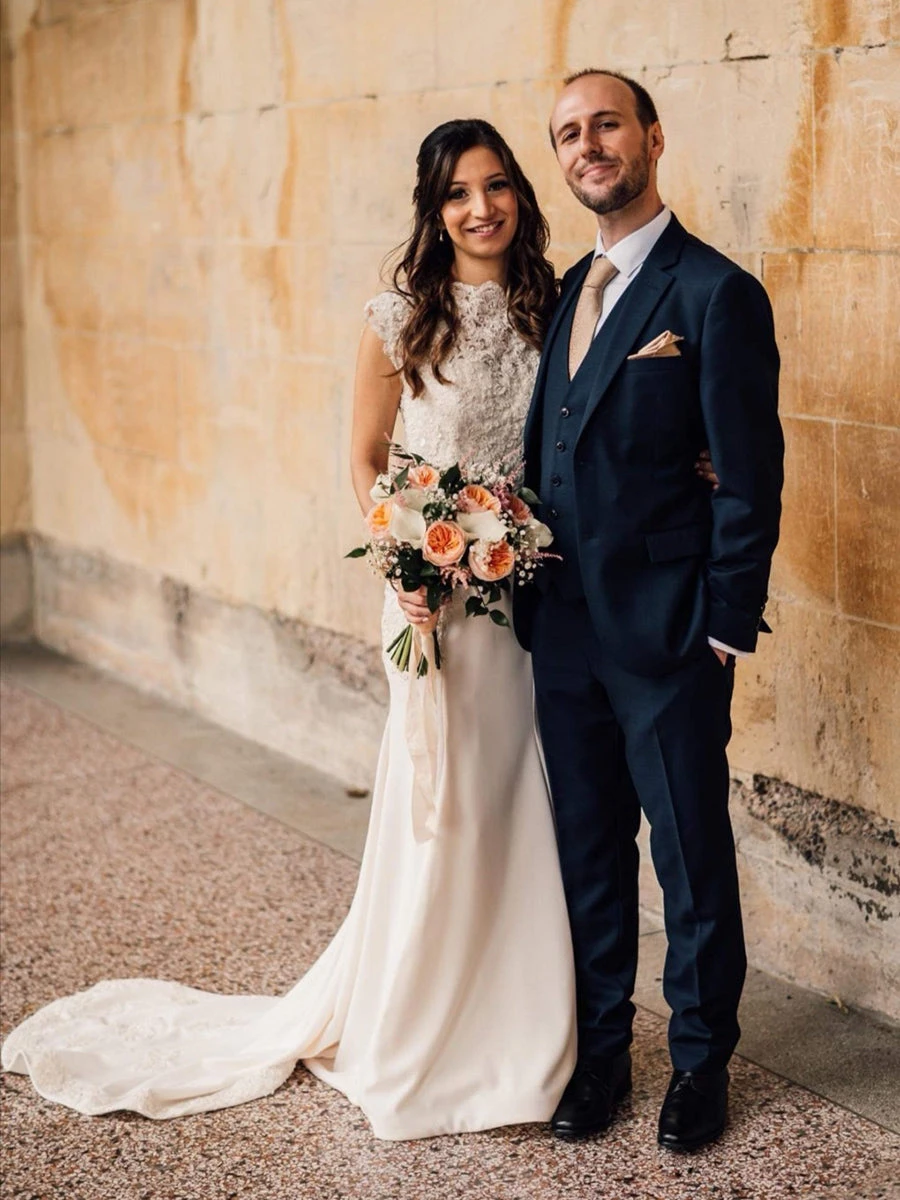 The border consists of a cluster of flowers which are corded. Embroidery is used to create a shading effect whilst beads and sequins are prominent on all flowers. Silver filigree thread is used sparingly. The scallop edge is formed by a series of tight zig zags.