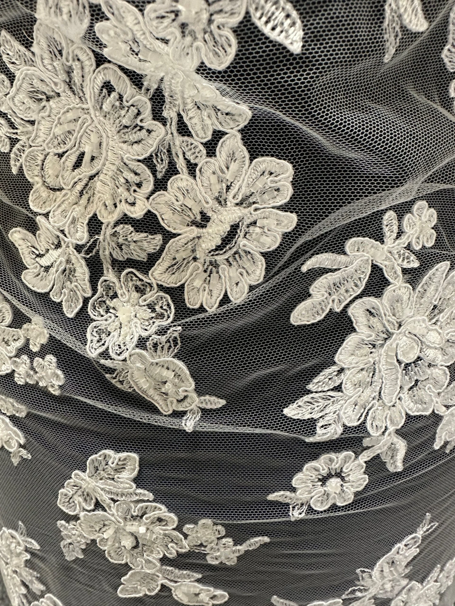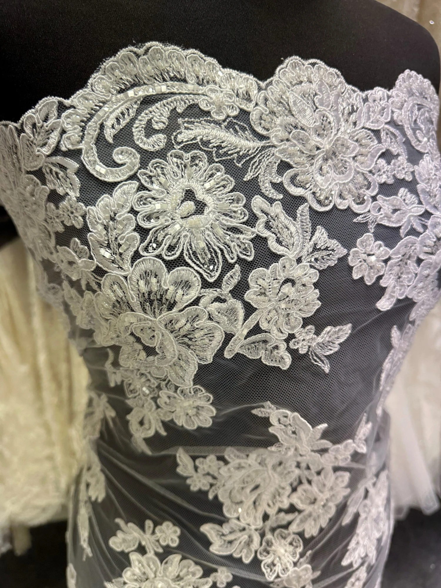 A very extravagant glitzy Hollywood style design, Victoria Lace is also available in Ivory or in our range of coloured laces.