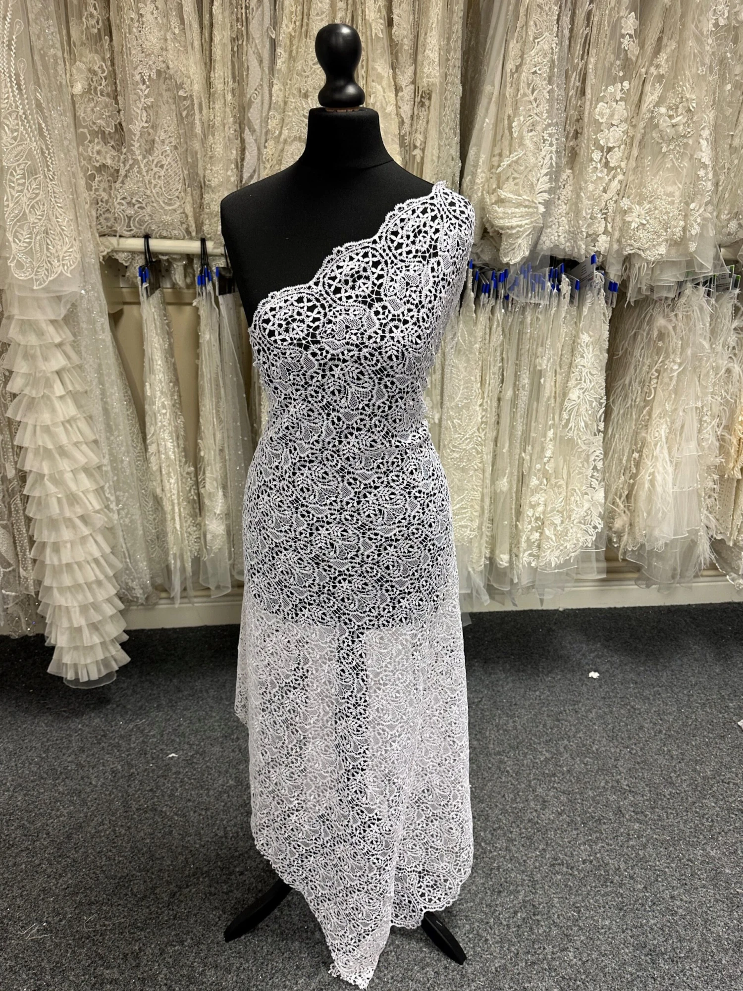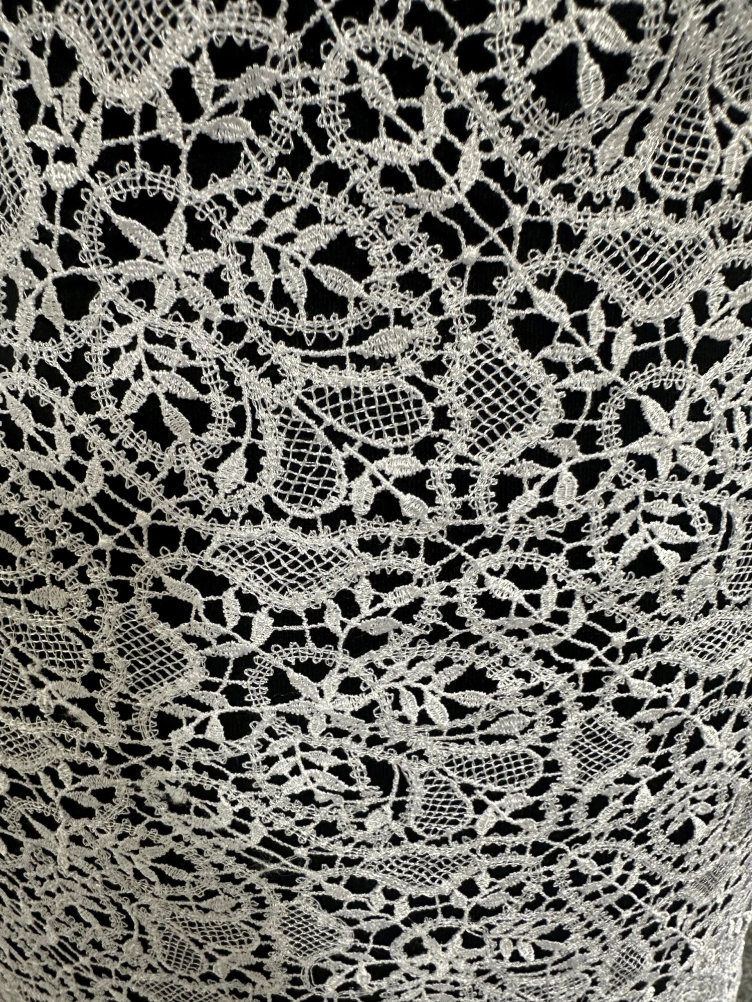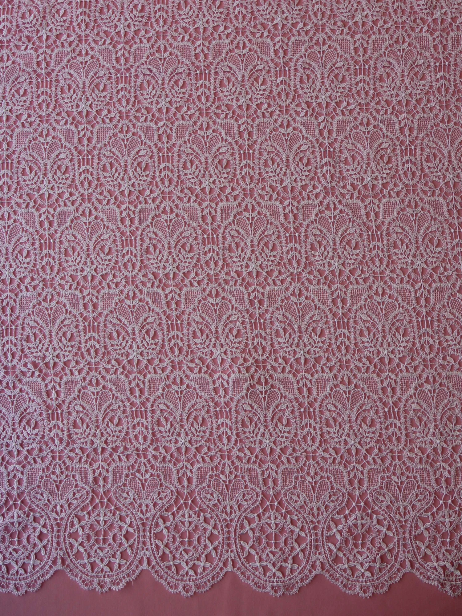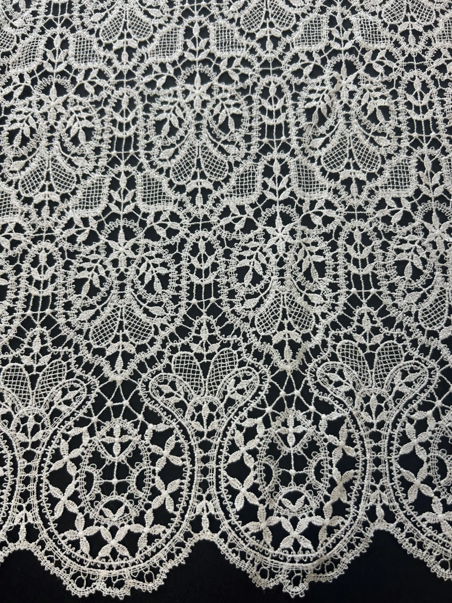 This lace measures 107 cm (42″) in width. We also offer this lace in Ivory