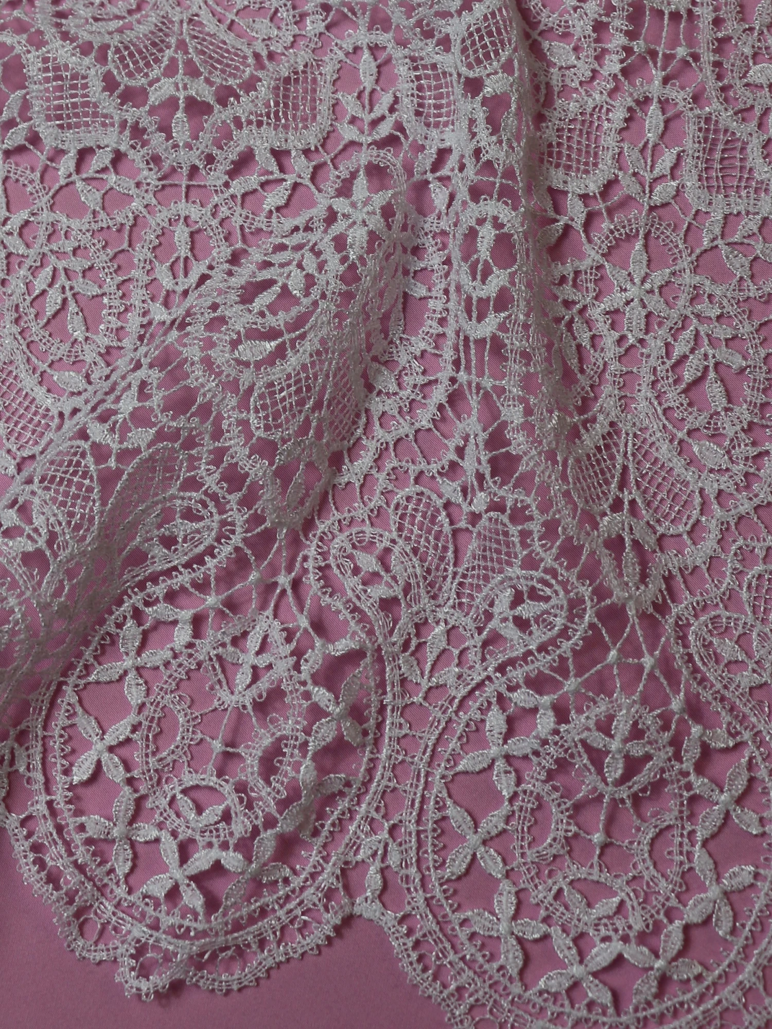 Isabella is a guipure lace with an art deco theme. This beautiful pattern incorporates flower buds and leaves which are interspersed by small basket weave.