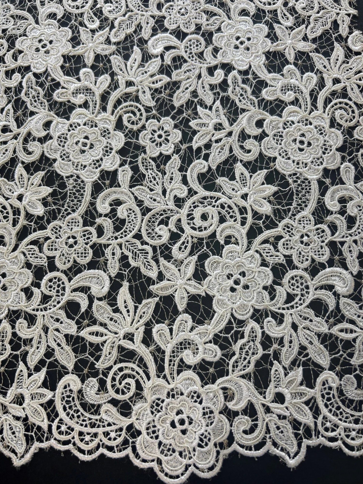 This is an exciting and stunning design with features that set it apart from all other Guipure designs. It is also available in ivory and measures 132 cm (52″) wide.