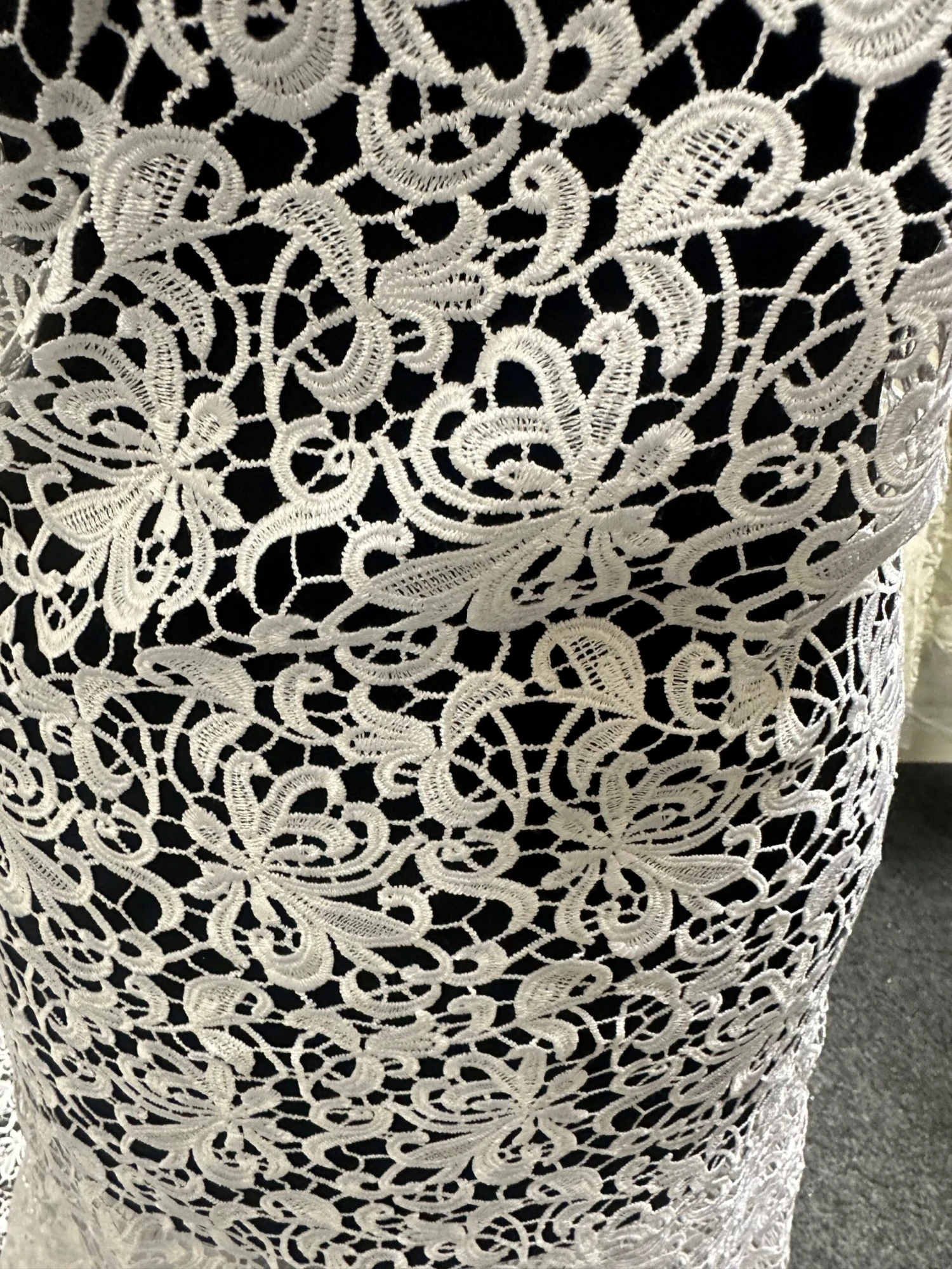 This lace measures 130cm (51″) across the width. Send for a free sample today.