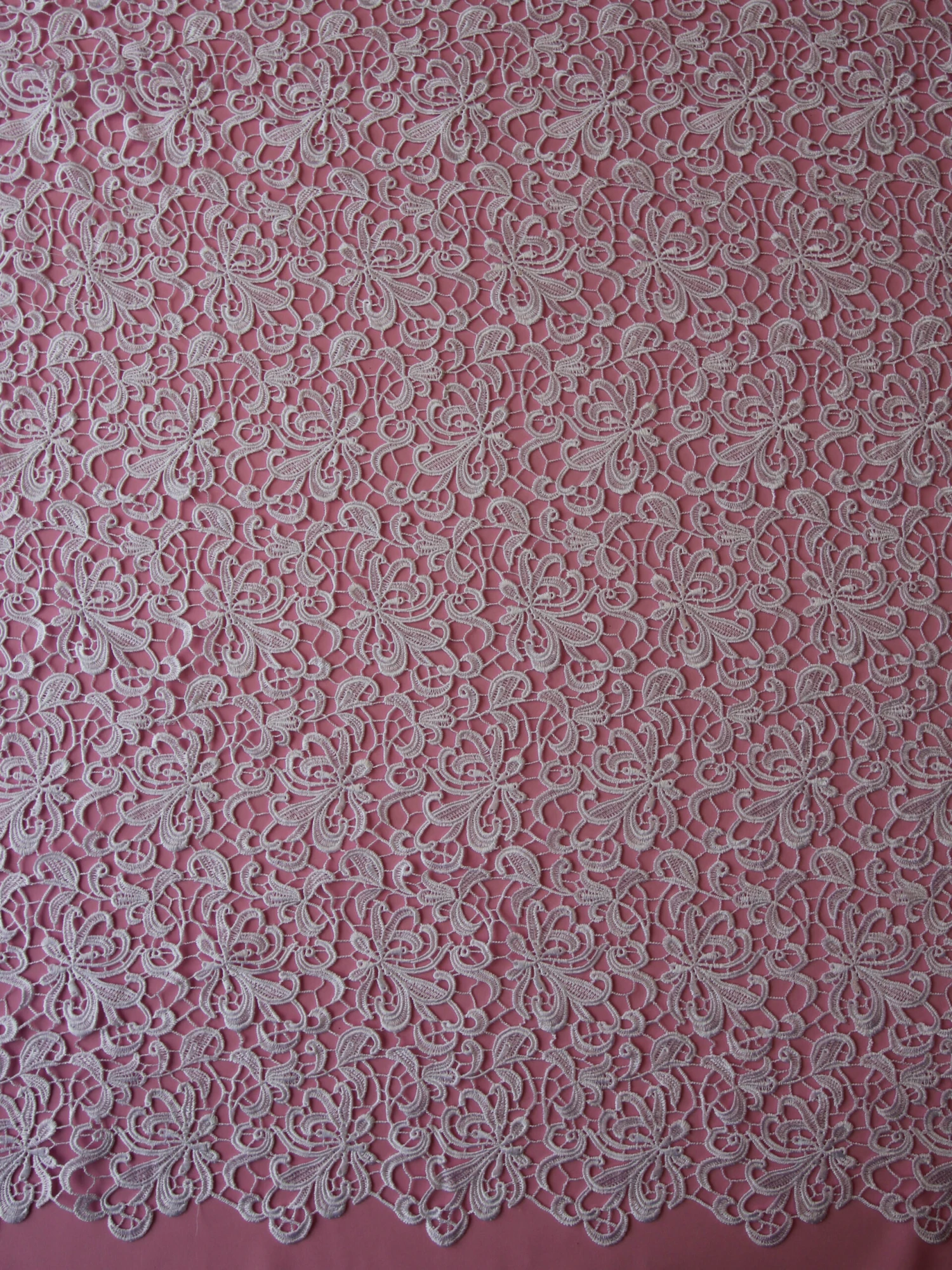 An elegant Guipure lace that has matching edges and a close set pattern.